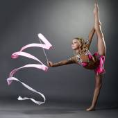 młoda kobieta ładny garnitur gimnastyk robi podziału