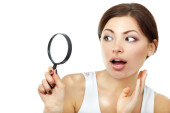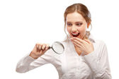 Zdjęcie "młoda kobieta patrzy przez szkło powiększające" może być wykorzystywane do celów osobistych i komercyjnych zgodnie z warunkami zakupionej licencji Royalty-free. Obraz jest dostępny do pobrania w jakości wysokiej rozdzielczości do 5760x3840.