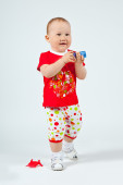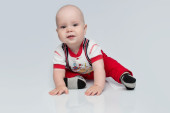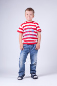 portret ładny mały chłopiec w niebieskim kolorze