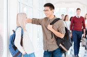Zdjęcie "Female student meeting her classmate." może być wykorzystywane do celów osobistych i komercyjnych zgodnie z warunkami zakupionej licencji Royalty-free. Obraz jest dostępny do pobrania w jakości wysokiej rozdzielczości do 5760x3840.