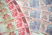 fragment indyjski banknoty - 10, 50 i 100 rupii indyjskich, próbki w