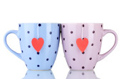 dwa Puchary i dwa porcję szaszłyki i kubek na białym tle