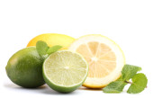 limonki i cytryny mięta na białym tle