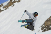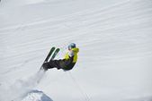 Zdjęcie "narciarstwo na świeżym śniegu w sezonie zimowym w piękny słoneczny dzień" może być wykorzystywane do celów osobistych i komercyjnych zgodnie z warunkami zakupionej licencji Royalty-free. Obraz jest dostępny do pobrania w jakości wysokiej rozdzielczości do 5760x3840.
