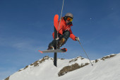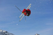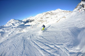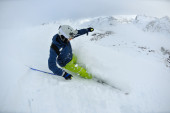 narciarstwo na świeżym śniegu w sezonie zimowym w piękny słoneczny dzień