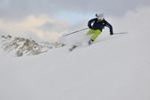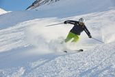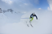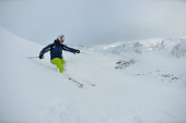 narciarstwo na świeżym śniegu w sezonie zimowym w piękny słoneczny dzień
