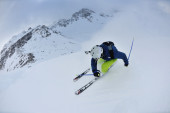 Zdjęcie "narciarstwo na świeżym śniegu w sezonie zimowym w piękny słoneczny dzień" może być wykorzystywane do celów osobistych i komercyjnych zgodnie z warunkami zakupionej licencji Royalty-free. Obraz jest dostępny do pobrania w jakości wysokiej rozdzielczości do 5760x3840.