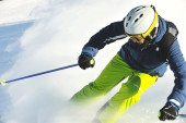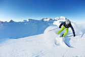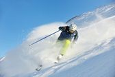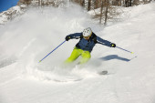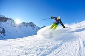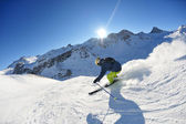 narciarstwo na świeżym śniegu w sezonie zimowym w piękny słoneczny dzień