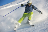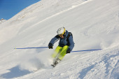 Zdjęcie "narciarstwo na świeżym śniegu w sezonie zimowym w piękny słoneczny dzień" może być wykorzystywane do celów osobistych i komercyjnych zgodnie z warunkami zakupionej licencji Royalty-free. Obraz jest dostępny do pobrania w jakości wysokiej rozdzielczości do 5760x3840.