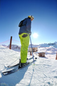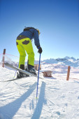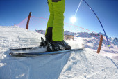 narciarstwo na świeżym śniegu w sezonie zimowym w piękny słoneczny dzień