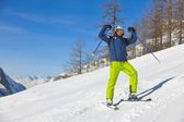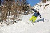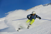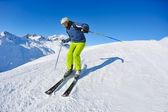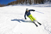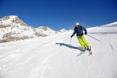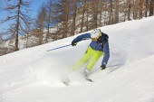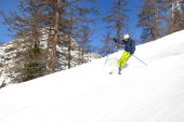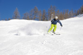 narciarstwo na świeżym śniegu w sezonie zimowym w piękny słoneczny dzień