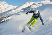 Zdjęcie "narciarstwo na świeżym śniegu w sezonie zimowym w piękny słoneczny dzień" może być wykorzystywane do celów osobistych i komercyjnych zgodnie z warunkami zakupionej licencji Royalty-free. Obraz jest dostępny do pobrania w jakości wysokiej rozdzielczości do 5760x3840.