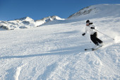 narciarstwo na świeżym śniegu w sezonie zimowym w piękny słoneczny dzień