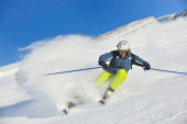 Zdjęcie "narciarstwo na świeżym śniegu w sezonie zimowym w piękny słoneczny dzień" może być wykorzystywane do celów osobistych i komercyjnych zgodnie z warunkami zakupionej licencji Royalty-free. Obraz jest dostępny do pobrania w jakości wysokiej rozdzielczości do 5760x3840.