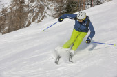 narciarstwo na świeżym śniegu w sezonie zimowym w piękny słoneczny dzień