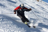 narciarstwo na świeżym śniegu w sezonie zimowym w piękny słoneczny dzień