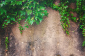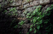 stary kamienny mur pokryty roślinnością. tło obrazkowe.