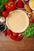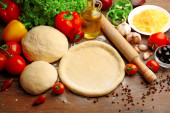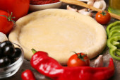 Zdjęcie "Podstawa ciasta i składników na pizzy, na stole" może być wykorzystywane do celów osobistych i komercyjnych zgodnie z warunkami zakupionej licencji Royalty-free. Obraz jest dostępny do pobrania w jakości wysokiej rozdzielczości do 5760x3840.
