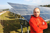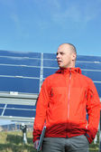 mechanika mężczyzna kolektorów słonecznych w miejscu pracy