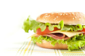 duże fast foody kanapkę z sałata, szynka, serem i pomidorem
