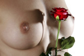 Piękna dziewczyna z piersi nagie gospodarstwa Biała Róża.