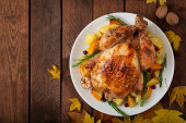 Pieczonego kurczaka faszerowane ryżem na świąteczny obiad