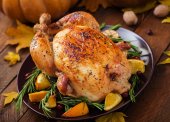 Pieczonego kurczaka faszerowane ryżem na świąteczny obiad