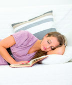 Zdjęcie "młoda kobieta zasnął podczas czytania książki" może być wykorzystywane do celów osobistych i komercyjnych zgodnie z warunkami zakupionej licencji Royalty-free. Obraz jest dostępny do pobrania w jakości wysokiej rozdzielczości do 5760x3840.