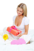 uśmiechający się ciąży sprawdza, czy zakupy dla dziecka