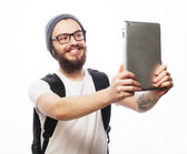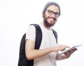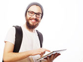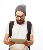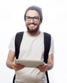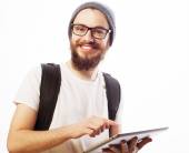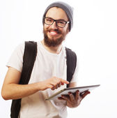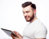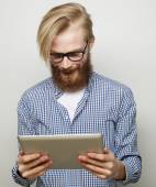 Zdjęcie "Szczęśliwa młoda brodaty mężczyzna" może być wykorzystywane do celów osobistych i komercyjnych zgodnie z warunkami zakupionej licencji Royalty-free. Obraz jest dostępny do pobrania w jakości wysokiej rozdzielczości do 5760x3840.