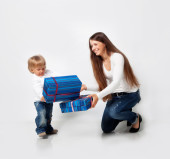 Matka z synem w pobliżu choinki