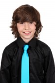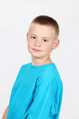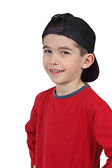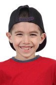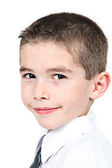 ładny, mały chłopiec, pozowanie na kamery