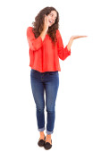 Zdjęcie "młoda kobieta, prezentując swój produkt" może być wykorzystywane do celów osobistych i komercyjnych zgodnie z warunkami zakupionej licencji Royalty-free. Obraz jest dostępny do pobrania w jakości wysokiej rozdzielczości do 5760x3840.