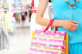 Kobieta trzyma kolorowe torby na zakupy w ich rękach