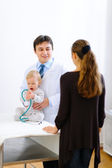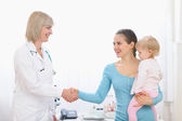 portrety dziecka, matka i dziecięcej lekarz Wyświetlono kciuk w górę