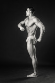 Zdjęcie "Kulturysta pokazuje swoje ciało na ciemnym tle" może być wykorzystywane do celów osobistych i komercyjnych zgodnie z warunkami zakupionej licencji Royalty-free. Obraz jest dostępny do pobrania w jakości wysokiej rozdzielczości do 5760x3840.