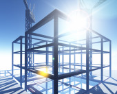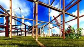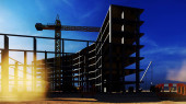 Plac budowy o zachodzie słońca