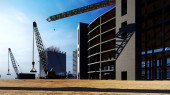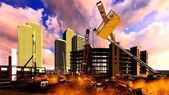 Plac budowy o zachodzie słońca