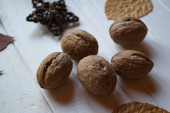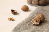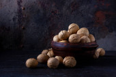 orzechy włoskie na drewnianym stole. asortyment orzechy.