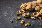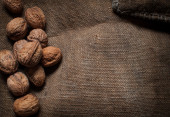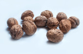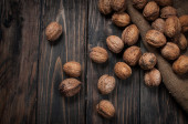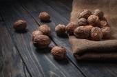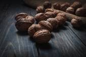 Migdały, orzechy włoskie na drewnianym stole. asortyment orzechy.