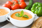 Zdjęcie "Zupa pomidorowa gazpacho. Hiszpański jedzenie" może być wykorzystywane do celów osobistych i komercyjnych zgodnie z warunkami zakupionej licencji Royalty-free. Obraz jest dostępny do pobrania w jakości wysokiej rozdzielczości do 5760x3840.