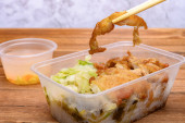 Lunch box z russel kiełkować garnek i smażony kurczak