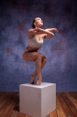 Zdjęcie "Young beautiful dancer in beige swimwear posing on white cube" może być wykorzystywane do celów osobistych i komercyjnych zgodnie z warunkami zakupionej licencji Royalty-free. Obraz jest dostępny do pobrania w jakości wysokiej rozdzielczości do 5760x3840.