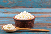 Zdjęcie "Świeże sery feta w ceramicznym naczyniu i łyżka." może być wykorzystywane do celów osobistych i komercyjnych zgodnie z warunkami zakupionej licencji Royalty-free. Obraz jest dostępny do pobrania w jakości wysokiej rozdzielczości do 5760x3840.