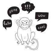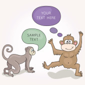 Śmieszne małpy z dymek. Wektorowych i kreskówka na białym tle postać. Ilustracja karty z ręki ciągnione małpa i bańka mowy. Można umieścić swój własny tekst na mowę bańki lub znak pokładzie.