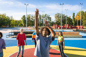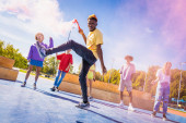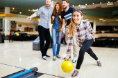Zdjęcie "Grupa znajomych, grając w kręgle" może być wykorzystywane do celów osobistych i komercyjnych zgodnie z warunkami zakupionej licencji Royalty-free. Obraz jest dostępny do pobrania w jakości wysokiej rozdzielczości do 5760x3840.