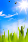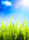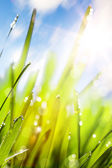 streszczenie Ranna rosa na trawie wiosną, naturalne spr