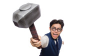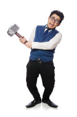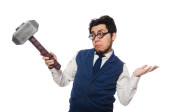 Młody mężczyzna młoteczek na białym tle gospodarstwa