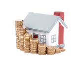zabawka mały dom i monet w formie diagramu. koncepcja