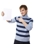 uśmiechnięty człowiek biznesu wyświetlania pustej karty.